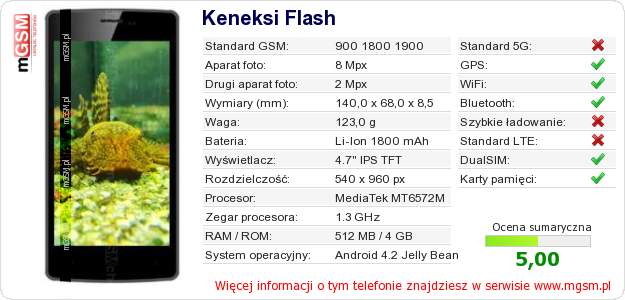 Masz swoją stronę? Chcesz wstawić gdzieś informacje o podstawowych danych telefonu Keneksi Flash ? To bardzo proste. Możesz pobrać obrazek, lub skopiować i wkleić na stronę poniższy kod:Wklejenie tego kodu spowoduje wyświetlenie poniższego obrazka: