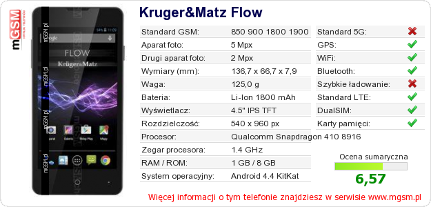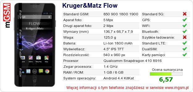Dane telefonu Kruger&Matz Flow na Twojej stronie