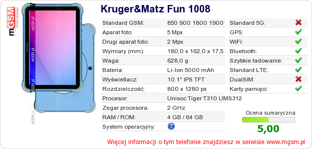 Dane telefonu Kruger&Matz Fun 1008 na Twojej stronie