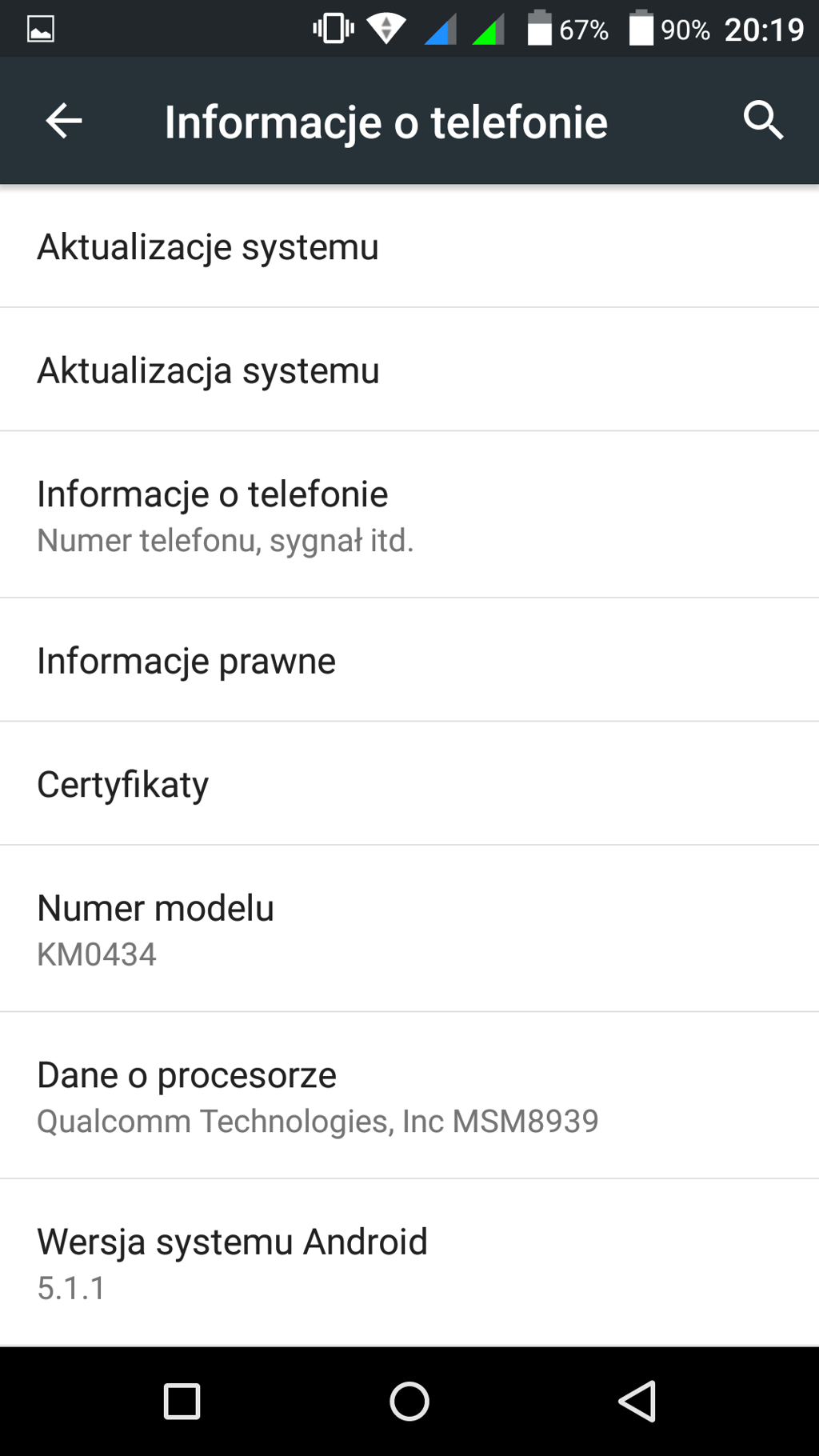 I jeśli ktoś spodziewał się znaleźć w tym sprzęcie jakieś interesujące nakładki, ciekawe rozwiązania, tudzież nietypowe i nowatorskie usprawnienia, prawdopodobnie może być trochę rozczarowany. W testowanym telefonie jest bowiem klasyczny system od Google, można powiedzieć - zestaw 100-procentowo standardowy. System zainstalowano w wersji 5.1, i wyższego zainstalować nie mogłem. I jak to zwykle w życiu bywa, dla jednych będzie to wada, a dla innych zaleta...