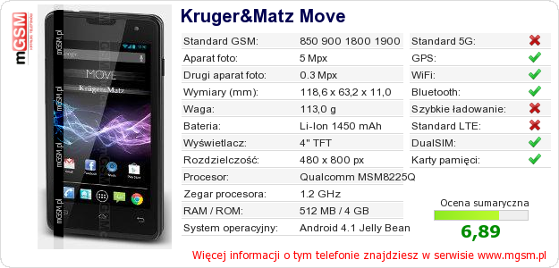 Dane telefonu Kruger&Matz Move na Twojej stronie