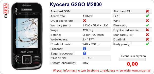 Dane telefonu Kyocera G2GO M2000 na Twojej stronie