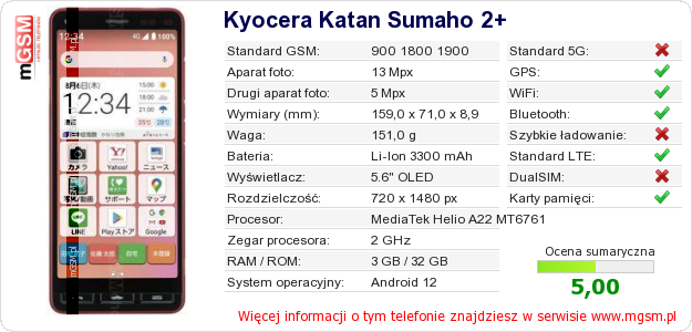 Dane telefonu Kyocera Katan Sumaho 2+ na Twojej stronie