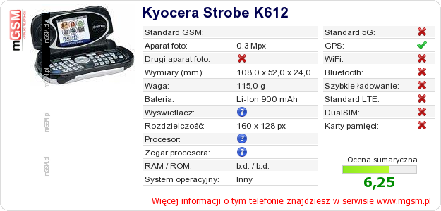 Dane telefonu Kyocera Strobe K612 na Twojej stronie