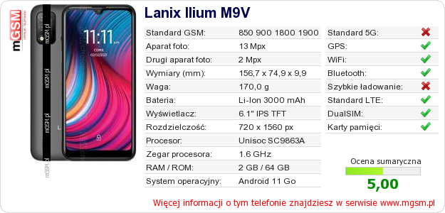 Dane telefonu Lanix Ilium M9V na Twojej stronie