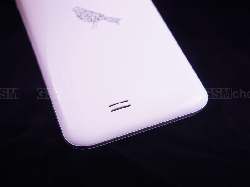 Pokrywa baterii wykonana została z błyszczącego, białego tworzywa (z delikatną teksturą). W jej górnej części widnieje lekko uniesiony ponad obudowę obiektyw aparatu wraz z diodą doświetlającą, w dolnej zaś wylot głośnika zewnętrznego (tworzywo jest w tym miejscu lekko wypukłe, prawdopodobnie by nie tłumić całkowicie głośnika, gdy telefon będzie leżał na płaskiej powierzchni). Pośrodku widnieje natomiast niewielka, ale bardzo ładnie zaprojektowana grafika przedstawiająca ptak - co jest bezpośrednim nawiązaniem do nazwy producenta (lark - ang. skowronek). Ciekawostką są oznaczenia poszczególnych klawiszy i portów, rzecz rzadko spotykana wśród współczesnych komórek.
