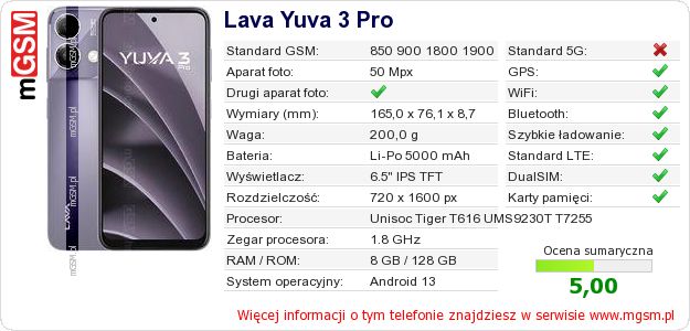 Dane telefonu Lava Yuva 3 Pro na Twojej stronie