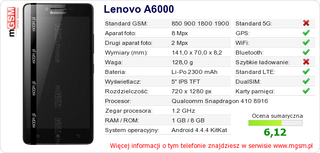 Dane telefonu Lenovo A6000 na Twojej stronie