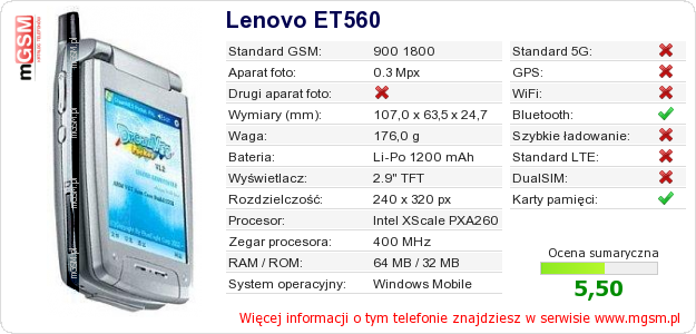 Dane telefonu Lenovo ET560 na Twojej stronie