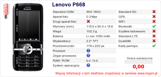 Dane telefonu Lenovo P668 na Twojej stronie