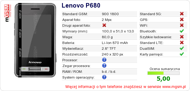 Dane telefonu Lenovo P680 na Twojej stronie