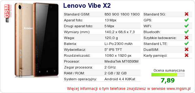Dane telefonu Lenovo Vibe X2 na Twojej stronie