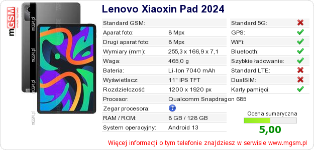 Dane telefonu Lenovo Xiaoxin Pad 2024 na Twojej stronie