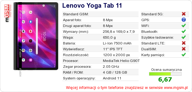 Dane telefonu Lenovo Yoga Tab 11 na Twojej stronie
