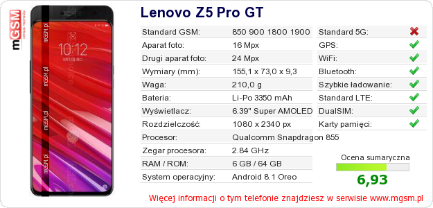 Dane telefonu Lenovo Z5 Pro GT na Twojej stronie