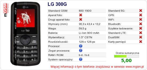 Dane telefonu LG 300G na Twojej stronie