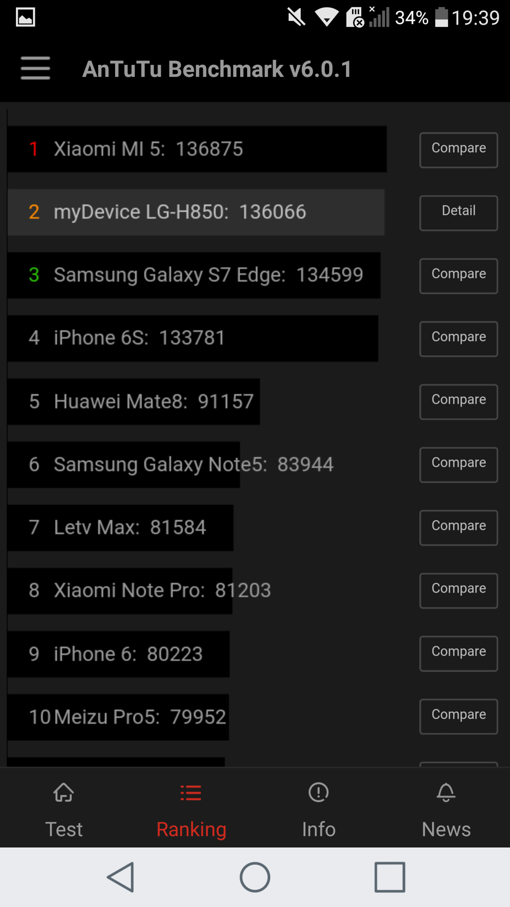 Tak prezentują się osiągi LG G5 w benchmarkach: