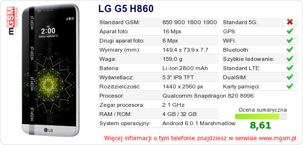 Dane telefonu LG G5 H860 na Twojej stronie
