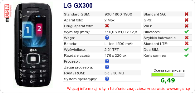 Dane telefonu LG GX300 na Twojej stronie