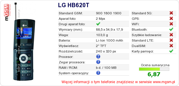 Dane telefonu LG HB620T na Twojej stronie
