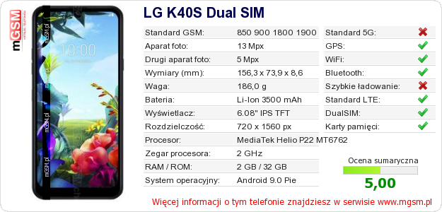 Dane telefonu LG K40S Dual SIM na Twojej stronie