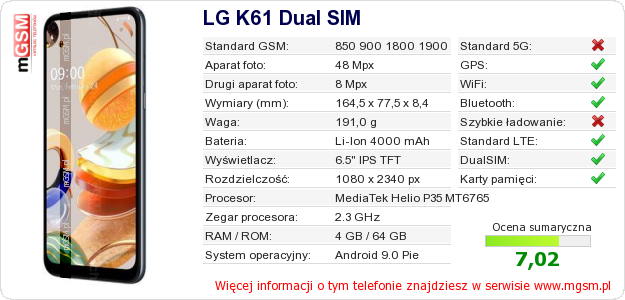 Dane telefonu LG K61 Dual SIM na Twojej stronie
