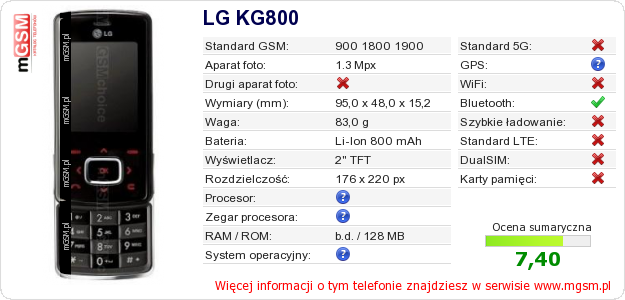 Dane telefonu LG KG800 na Twojej stronie