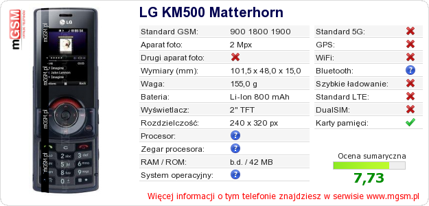 Dane telefonu LG KM500 Matterhorn na Twojej stronie