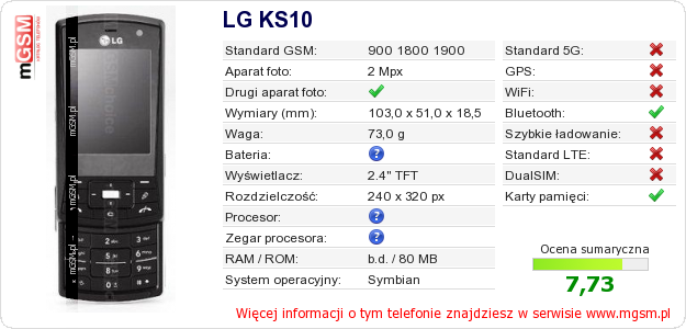 Dane telefonu LG KS10 na Twojej stronie