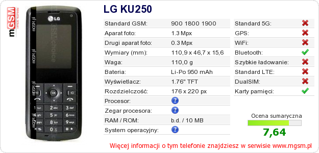 Dane telefonu LG KU250 na Twojej stronie