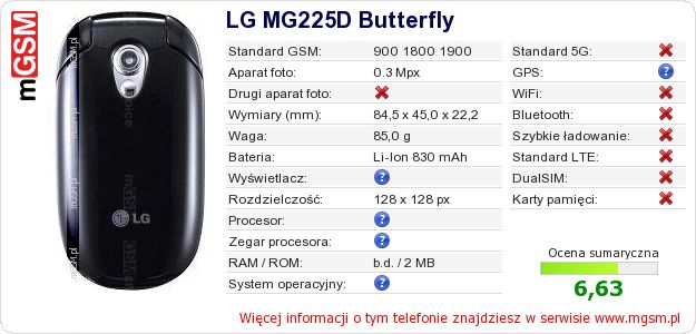 Dane telefonu LG MG225D Butterfly na Twojej stronie