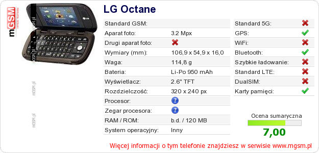 Dane telefonu LG Octane na Twojej stronie