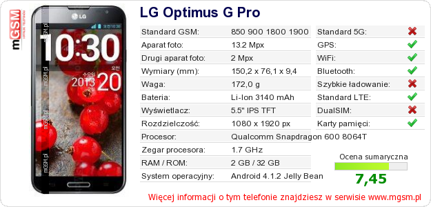 Dane telefonu LG Optimus G Pro na Twojej stronie