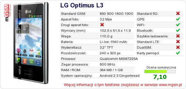 Dane telefonu LG Optimus L3 na Twojej stronie