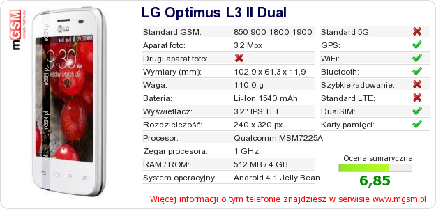 Dane telefonu LG Optimus L3 II Dual na Twojej stronie
