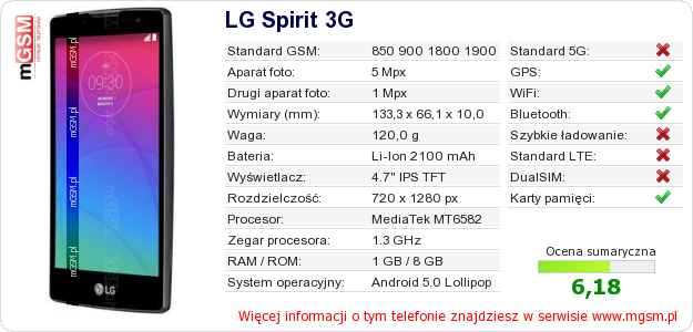 Dane telefonu LG Spirit 3G na Twojej stronie