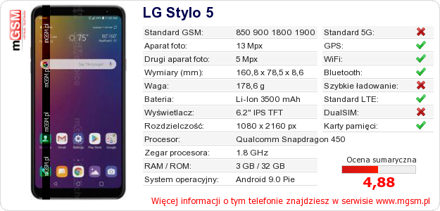 Dane telefonu LG Stylo 5 na Twojej stronie