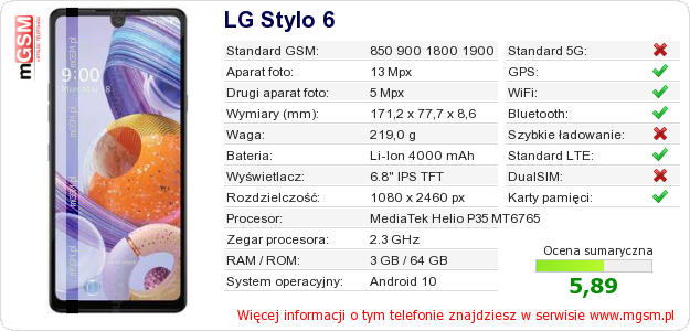 Dane telefonu LG Stylo 6 na Twojej stronie