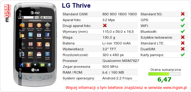 Dane telefonu LG Thrive na Twojej stronie