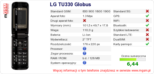 Dane telefonu LG TU330 Globus na Twojej stronie
