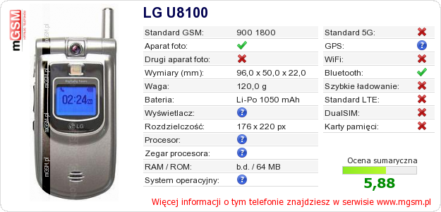 Dane telefonu LG U8100 na Twojej stronie