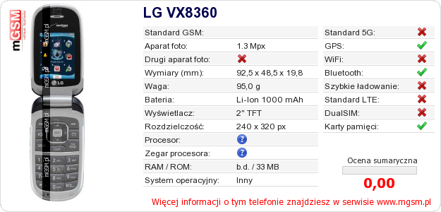 Dane telefonu LG VX8360 na Twojej stronie