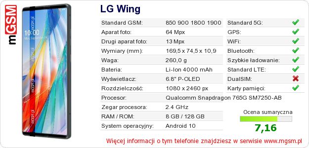 Dane telefonu LG Wing na Twojej stronie