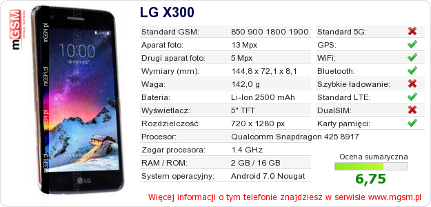 Dane telefonu LG X300 na Twojej stronie