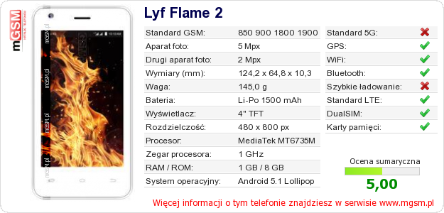 Dane telefonu Lyf Flame 2 na Twojej stronie