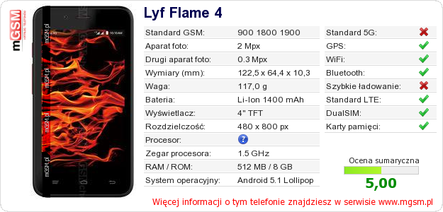 Dane telefonu Lyf Flame 4 na Twojej stronie