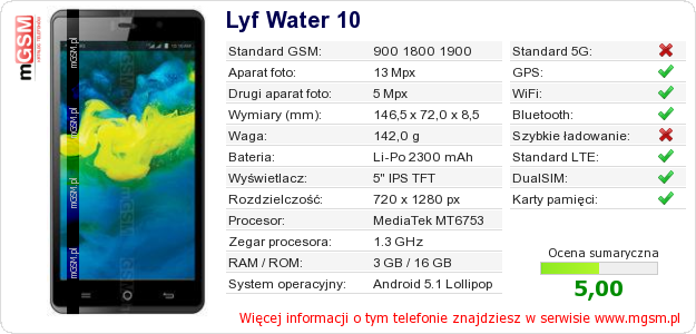 Dane telefonu Lyf Water 10 na Twojej stronie