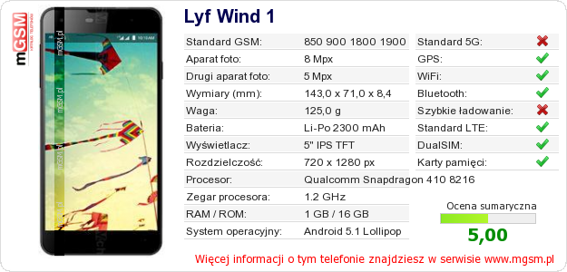 Dane telefonu Lyf Wind 1 na Twojej stronie