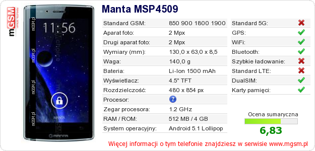 Dane telefonu Manta MSP4509 na Twojej stronie