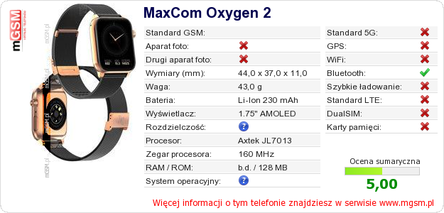 Dane telefonu MaxCom Oxygen 2 na Twojej stronie